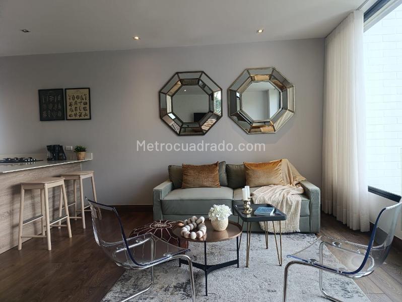 Furnished studio for rent in a gated community located near main roads, supermarkets, shopping centers, churches, public transport routes, and complementary services in the area. It features wooden flooring, security door, independent living and dining room, 1 bedroom with walk-in closet and private bathroom, social bathroom, jacuzzi, open integral kitchen, BBQ area, utility room, laundry area, and covered independent parking. The closed complex includes an elevator and social areas that feature a gym, Turkish bath, green areas, security, and 24-hour reception, intercom, and CCTV.