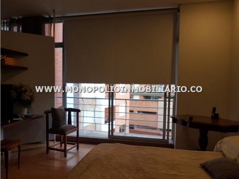 Beautiful furnished studio apartment for rent, approximately 52 square meters, located in El Poblado, 4th floor, stratum 5 in a building. Inside, it features comfortable living room furniture, a bedroom with a double bed, walk-in closet, and closet, a private bathroom and a social bathroom tiled and equipped; functional mixed integral kitchen with extractor, American bar and three stools, lower and upper cabinets, refrigerator, microwave, and other necessary utensils, gas network, balcony, and windows. Linen, a plasma TV, auxiliary furniture, washing machine, recessed lights, moldings, intercom, and wireless internet. Wooden flooring, excellent condition paint. Covered parking, visitor parking, garbage chute, and elevator. 24-hour security. Description of the area: Residential area near Santa María de los Ángeles park, Casa Teatro El Poblado, Jumbo Las Vegas, banking area, Parroquia Santa María de los Ángeles, Cßmara de C.