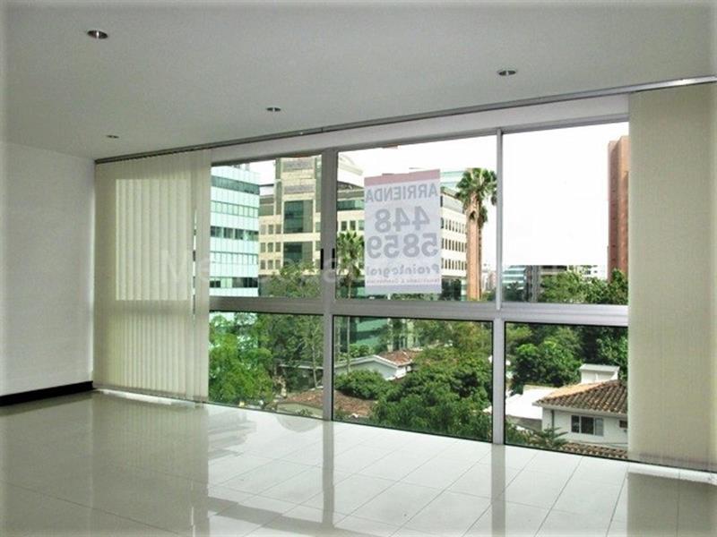 Apartment for rent in a gated community in the Alejandría sector, located two blocks from CC Santa Fe, Milla de Oro, and Oviedo, with public transportation routes and easy access from Av. El Poblado. Modern finishes, porcelain tile floors, access hall, living and dining area with excellent lighting, 2 bedrooms with a private bathroom in the main bedroom, open-plan American-style integrated kitchen, and a large floor-to-ceiling window with an outdoor view. No gas meter and covered parking. Pool, gym, sauna, children's playground, green areas, 24-hour security, intercom, and closed-circuit TV. *Properties subject to availability verification.*