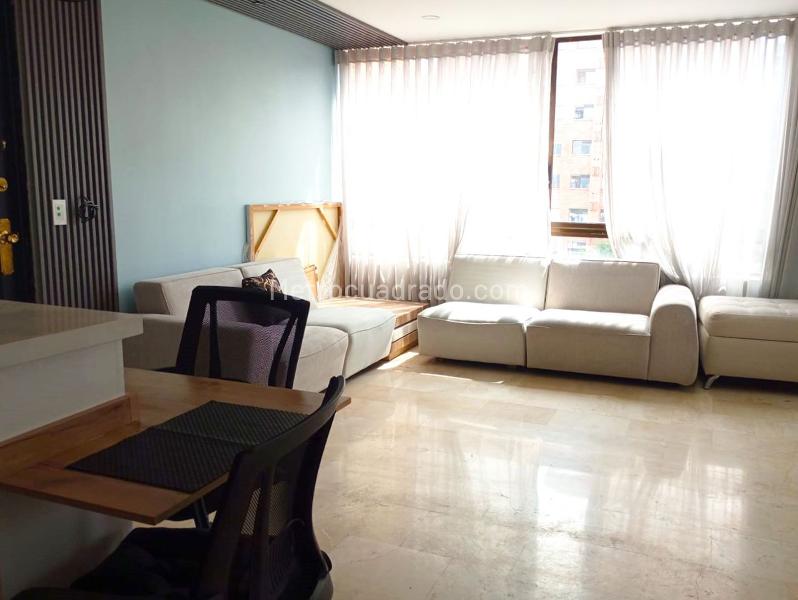 Furnished apartment for rent in a gated community with easy access to the main road, close to complementary services in a shopping center, public transport routes. A very quiet environment. It features marble and laminate flooring, independent living and dining rooms, study, 2 bedrooms with a bathroom in each, open American-style kitchen, and covered parallel parking. The building includes elevators, green areas, 24-hour security, intercom, and closed-circuit TV. *Properties subject to availability verification.*