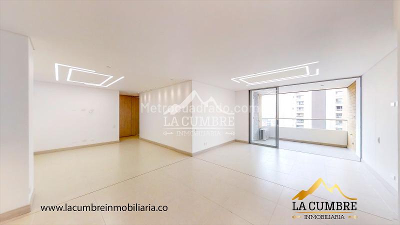 Apartment for rent of 120 square meters located in the Castropol area of El Poblado. It has 3 bedrooms, 3 bathrooms, and covered double parking. The unit features an elevator, swimming pool, gym, green areas, children's playground, social room, visitor parking, and 24-hour security. The location is ideal with easy access to main roads, shopping centers, and public transport.