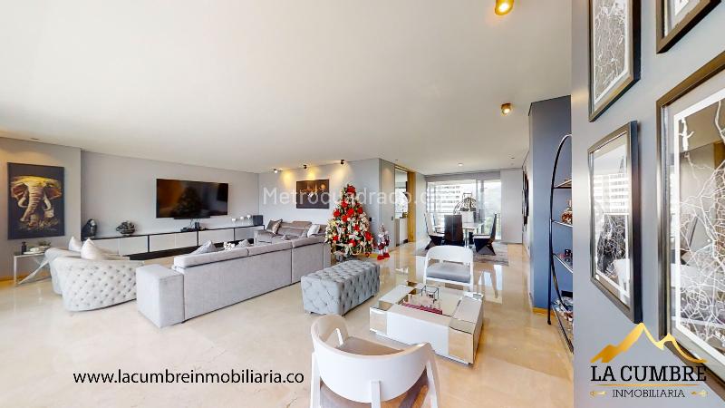 Apartment for rent located in the Los Balsos sector of El Poblado. It features 3 bedrooms, 4 bathrooms, a service room and bathroom, and double covered parking. The unit includes an elevator, pool, gym, sauna, jacuzzi, squash court, green areas, children's playground, social lounge, visitor parking, and 24-hour security. The location is ideal with easy access to main roads, shopping centers, and public transport.