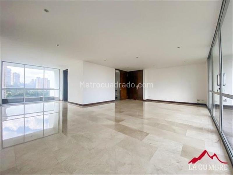 Apartment for rent in the Tesoro area of El Poblado. 3 bedrooms, 5 bathrooms, 3 parking spaces, and 1 storage room. Includes a service bedroom and bathroom. Amenities include a Jacuzzi, gym, social lounge, children's playgrounds, and visitor parking. The unit has 24-hour security and ample green areas. The location is ideal, with easy access to main roads and public transportation.