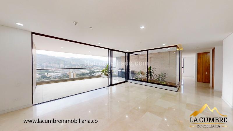 Apartment for rent located in the Santa Maria de Los Ángeles sector, El Poblado. It features 3 bedrooms, 4 bathrooms, a service room and bathroom, and triple covered parking. The unit includes an elevator, pool, jacuzzi, sauna, squash court, gym, green areas, children's playground, social lounge, visitor parking, and 24-hour security. The location is ideal, with easy access to main roads, shopping centers, and public transport.