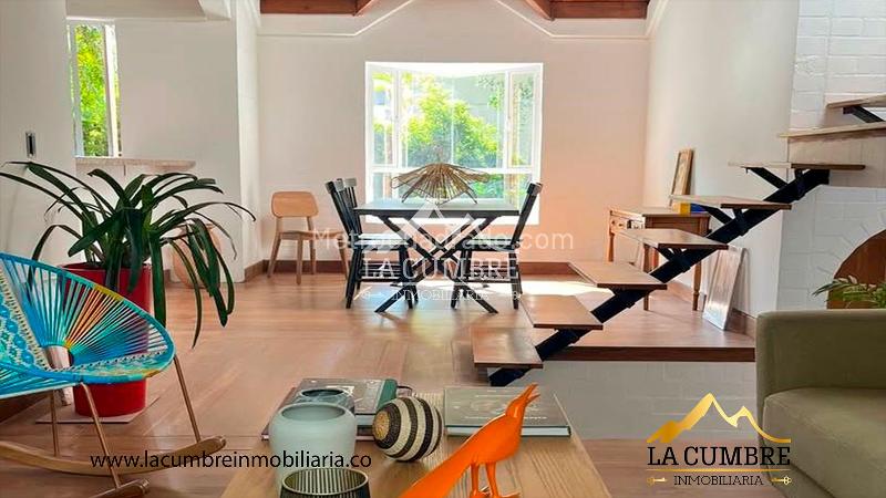 Furnished 2-level house for rent located in the San Lucas area of El Poblado. It features 3 bedrooms, 4 bathrooms, a service room and bathroom, and double parking. The unit includes green areas, visitor parking, and 24-hour security. The location is ideal, with easy access to main roads, shopping centers, and public transport.