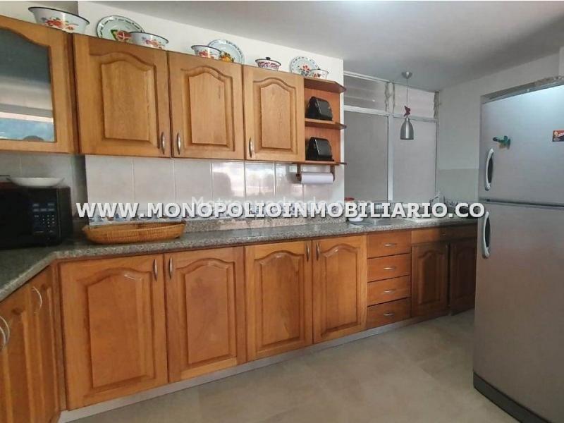 Excellent furnished apartment for rent, approximately 130 square meters, located in Envigado, 5th floor, in a closed unit. It offers comfortable furniture, three bedrooms, service room, and various amenities.