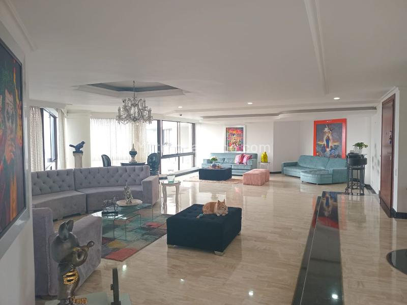 Furnished apartment for rent in a gated community located in an exclusive area with easy access from the main road, connected to public transport routes and complementary services in the area. It features marble flooring, security door, independent living and dining rooms, study, TV room, 4 bedrooms each with a bathroom and walk-in closet in the main bedroom, social bathroom, jacuzzi, private pool, closed integral kitchen, service room and bathroom, storage room, laundry area, terrace, and covered independent parking. Gated community with elevator and extensive social areas, including a pool, gym, social room, sauna/Turkish bath, children's parks, green areas, 24-hour security, and closed-circuit TV.