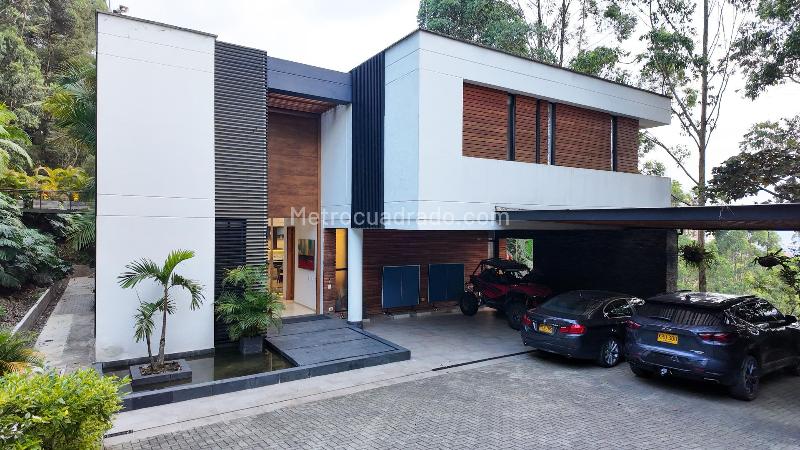 Country house near the city û Modern, surrounded by nature. Lot of 1,750 m² / Built area: 700 m². 8 years old. 3 spacious bedrooms with bathrooms and dressing rooms, the main with jacuzzi and access to a natural social area. Private office, study room with TV, main living room with fireplace, open integral kitchen with dining area, service room with full bathroom, social bathroom, utility room/storage, garage for 7 vehicles (5 covered, 2 uncovered), heated pool + full bathroom in wet area, terrace with outdoor seating, BBQ, fire pit, and panoramic views.