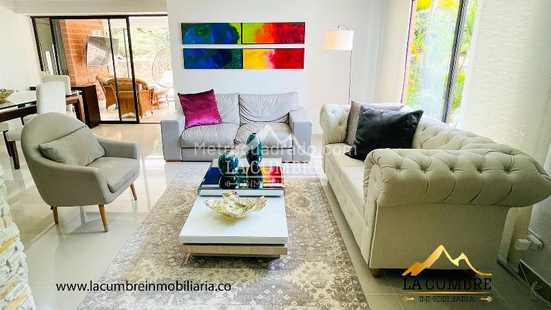 Furnished house for rent in a gated unit in the El Poblado El Tesoro area. 6 bedrooms, 6 bathrooms, 4 parking spaces, 2 storage rooms, 2 levels, and an interior garden. The unit has a swimming pool, social room, children's play area, visitor parking, 24-hour security, and large green areas. The location is ideal, with easy access to main roads, shopping centers, and public transportation.