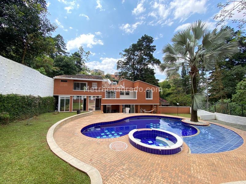 Exclusive house for rent located in El Poblado, La Calera sector. Features include 4 bedrooms each with private bathrooms and balconies, 8 bathrooms in total, spacious living room, independent dining room, library or study, TV room, modern open kitchen with gas stove and hood, quartz countertop, laundry area, terrace, patio, garden, double parallel parking, utility room, built area of 900 m² on a 1,300 m² lot, and 2 levels. This property offers privacy, spaciousness, and a privileged natural environment.