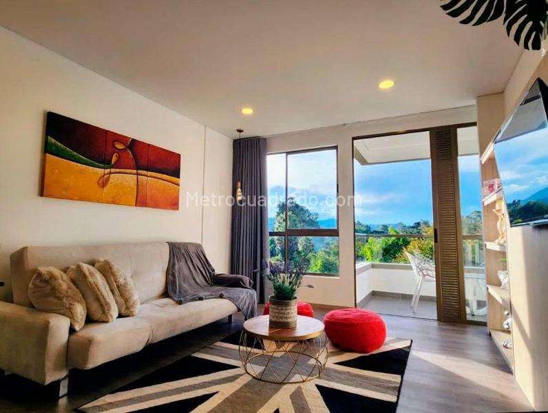 Apartamento AMOBLADO en arriendo y venta en unidad cerrada cerca a via principal, restaurantes, Carulla, facil acceso a rutas de transporte publico, y servicios complementarios. Piso en madera, puerta de seguridad, sala comedor independiente, 1 alcoba con baño en la alcoba principal, cocina integral abierta, balcon y parqueadero independiente cubierto . Conjunto cerrado con piscina, gimnasio, sauna, turco, parques infantiles, zonas verdes, vigilancia 24 hrs y circuito cerrado de tv. *Inmuebles sujetos a verificación de disponibilidad.*