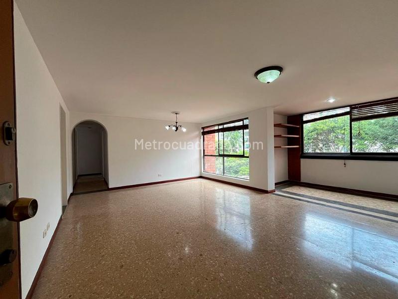 Apartamento en arriendo en conjunto cerrado cerca a centros comerciales, restaurantes, con acceso fácil a vías de transporte y servicios complementarios. Ubicado en una calle tranquila, de poco tráfico. Cuenta con pisos en granito y cerámica, sala-comedor, 3 alcobas con closet y baño en la principal, baño social y bañera, cocina integral cerrada, cuarto y baño de servicio, zona de ropas, cuarto útil y parqueadero cubierto lineal. El conjunto cerrado cuenta con ascensor, salón social, sauna, baño turco, parques infantiles, amplias zonas verdes, seguridad 24 horas y TV de circuito cerrado. *Los inmuebles están sujetos a verificación de disponibilidad.*