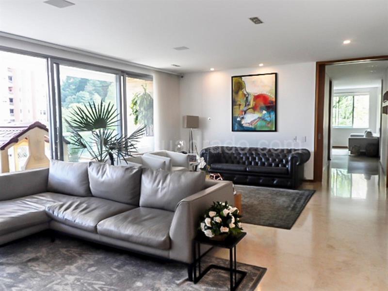 Apartamento en conjunto cerrado en el sector El Tesoro y sus servicios complementarios, muy cerca de la clínica Rosario, ubicado en una zona exclusiva; es un edificio de diseño contemporáneo con una sola torre. Pisos en mármol y madera, puerta de seguridad, sala y comedor independientes, estudio, sala de TV. 3 habitaciones cada una con baño, persianas automatizadas, cocina integral en paralelo con puerta corrediza, balcón y parqueadero cubierto independiente. Piscina con excelente vista de la ciudad, gimnasio, billar, parque infantil y guardería, rodeado por una gran reserva natural. Seguridad 24 horas, citófono y TV de circuito cerrado. También está disponible amoblado por $11.200.000.
