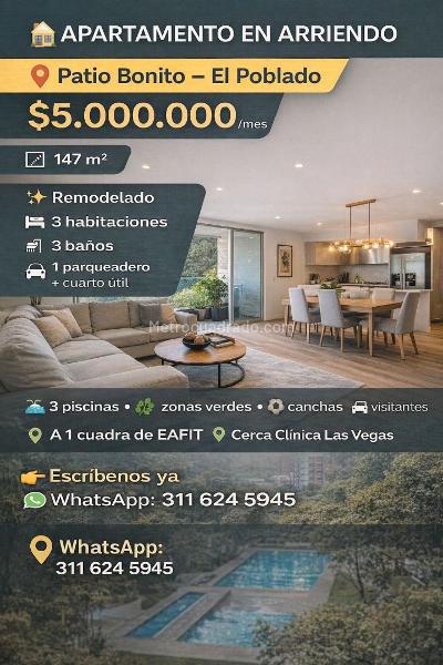 Este hermoso apartamento en Patio Bonito, Medellín, es el lugar ideal para quienes buscan vivir en un ambiente tranquilo y exclusivo. Con tres habitaciones amplias y tres baños, este espacio ofrece comodidad y privacidad para toda la familia.