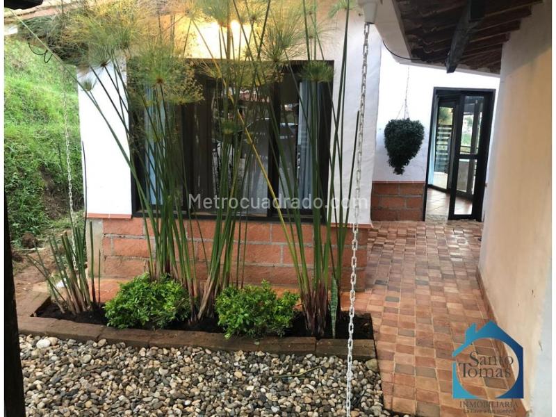 Casa campestre de 80 mts aproximadamente, tiene 2 habitaciones y un estudio en el nivel inferior y 3 baños, deck techado, parqueadero cubierto 1 y destapado otro, tener en cuenta que esta contigua a la otra cabaña compartiendo portada e ingreso A solo 15 min del aeropuerto, 20 min de rionegro y 15 min de marinilla, cerca a D1, Escuelas, tienda de barrio.