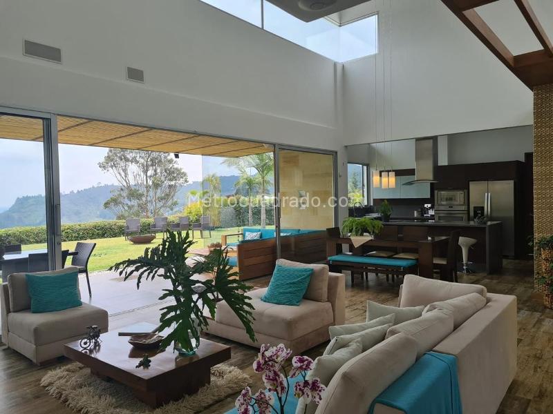 arcelación Sierra Alta ( al frente del Mall Puerto Madero) El Retiro, Don Diego ( hacia Llanogrande ) Área construida : 320 m2 Área lote 7000 2 niveles 4 alcobas c/ u con baño y vestier ( 2 de ellas en el primer nivel ) Casa de 10 años de construida Lote con bosque nativo Vista a las montañas Hermosos acabados Don Diego vía Llanogrande Salir de la rutina y desconectarse en un mundo apacible, rodeado de naturaleza es posible en esta hermosa casa ubicada en una exclusiva parcelación con fácil acceso; materiales, nobles, excelente diseño entorno verde y vista a la montaña ; moderna, con dos niveles, cuatro alcobas cada una con baño y vestier, de las cuales dos en la planta principal . Amplia área social con doble altura integrada con cocina abierta y con acceso directo una hermosa terraza rodeada de bosque y jardín con jacuzzi. Se alquila amoblada Mobiliario moderno de calidad